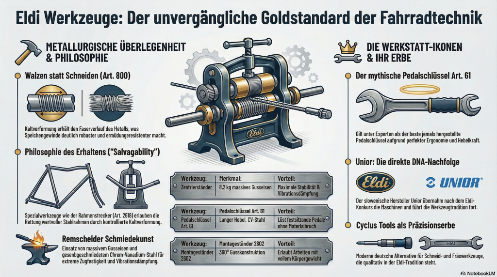 Seit über einem Jahrhundert steht ELDI für hochwertige Spezialwerkzeuge für die Fahrradindustrie. Dank praxisnaher Entwicklungen, hoher Fertigungsstandards und der Produktion in Deutschland sind viele unserer Werkzeuge bis heute in Werkstätten unentbehrlich.